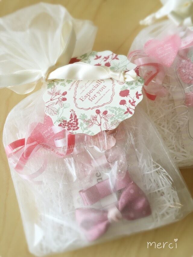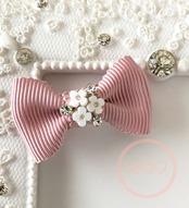 チェック柄リボンに、くすみピンク色のリボンにキラキラのお花ストーンと、花柄リボン♡