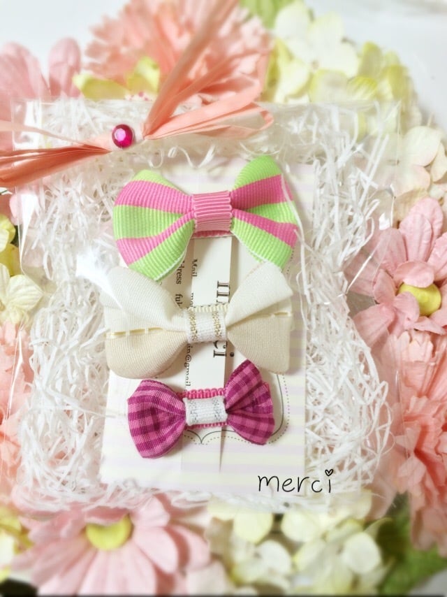 ベビーキッズにぴったりなヘアクリップ3点セットです⑅◡̈*.